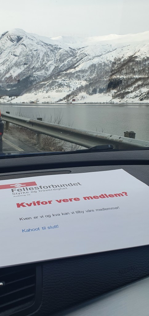 Avdeling 36 Sogn og Fjordane transportarbeiderforeing har denne veka vert på besøk på transport og logistikk på Kaupanger. Her møtte vi 22 motiverte elever denne dagen som følgde interessert med og stilte gode spørsmål.