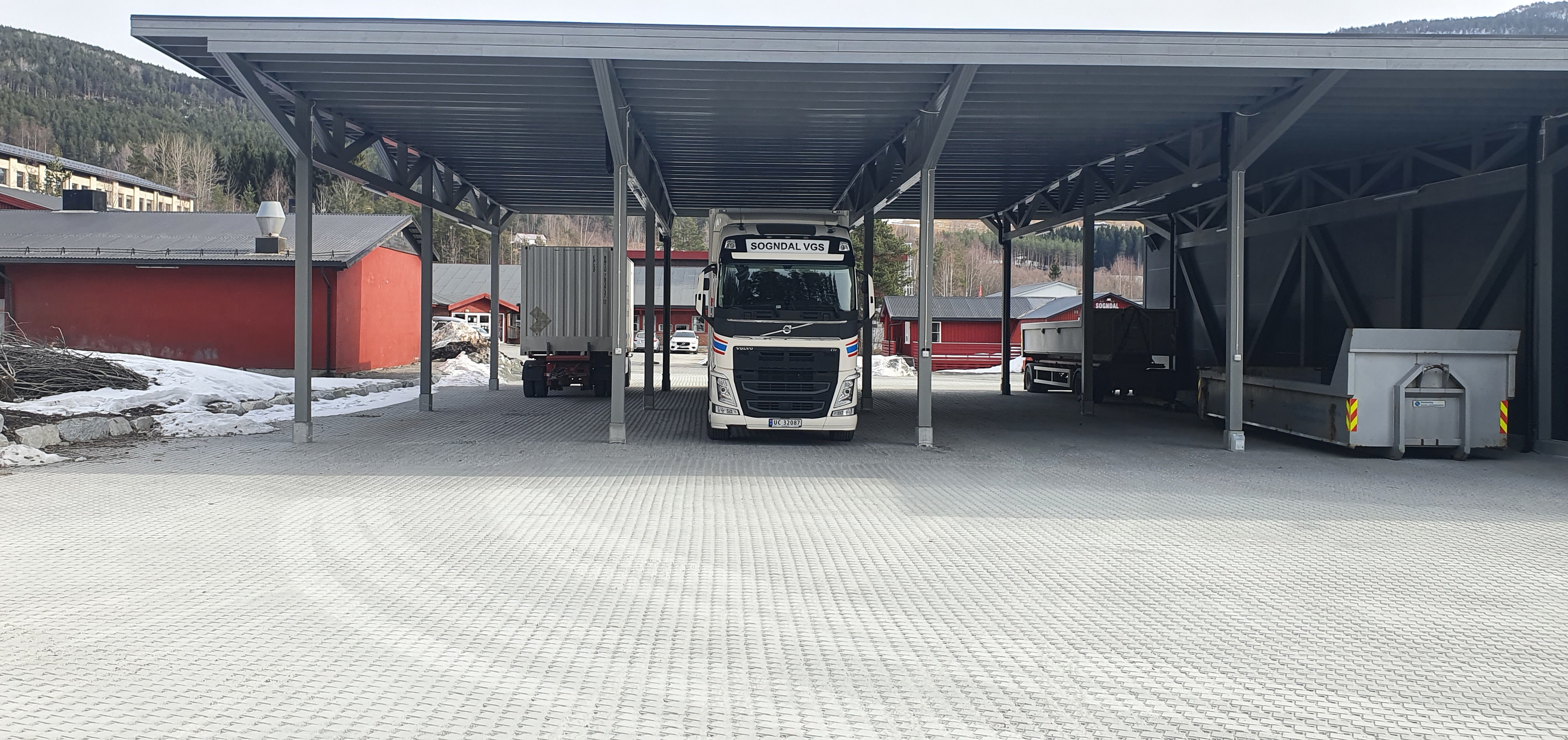 Elevane og Lærarane på skulen I Vitemeir bygget på Kaupanger har fått ein fantastisk bra plass og vere på. Tidsriktige klasserom / lokaler med tipp topp moderne fasiliteter. Parkering under tak for alle bilane og eigen vaskehall kan misunne mange bedrifter rundt omkring i landet. Det er flott og sjå at fylkeskommunen satser også i transportbransjen. Lærer Arne Skrede viste oss engasjert og stolt rundt på heile området. Litt oppgradering i lokala for truckopplæring står for tur, når dette er klart skulle vi vere godt rusta på alle fasiliteter til å ta imot nye sjåfør elever i framtida seier Skrede.
