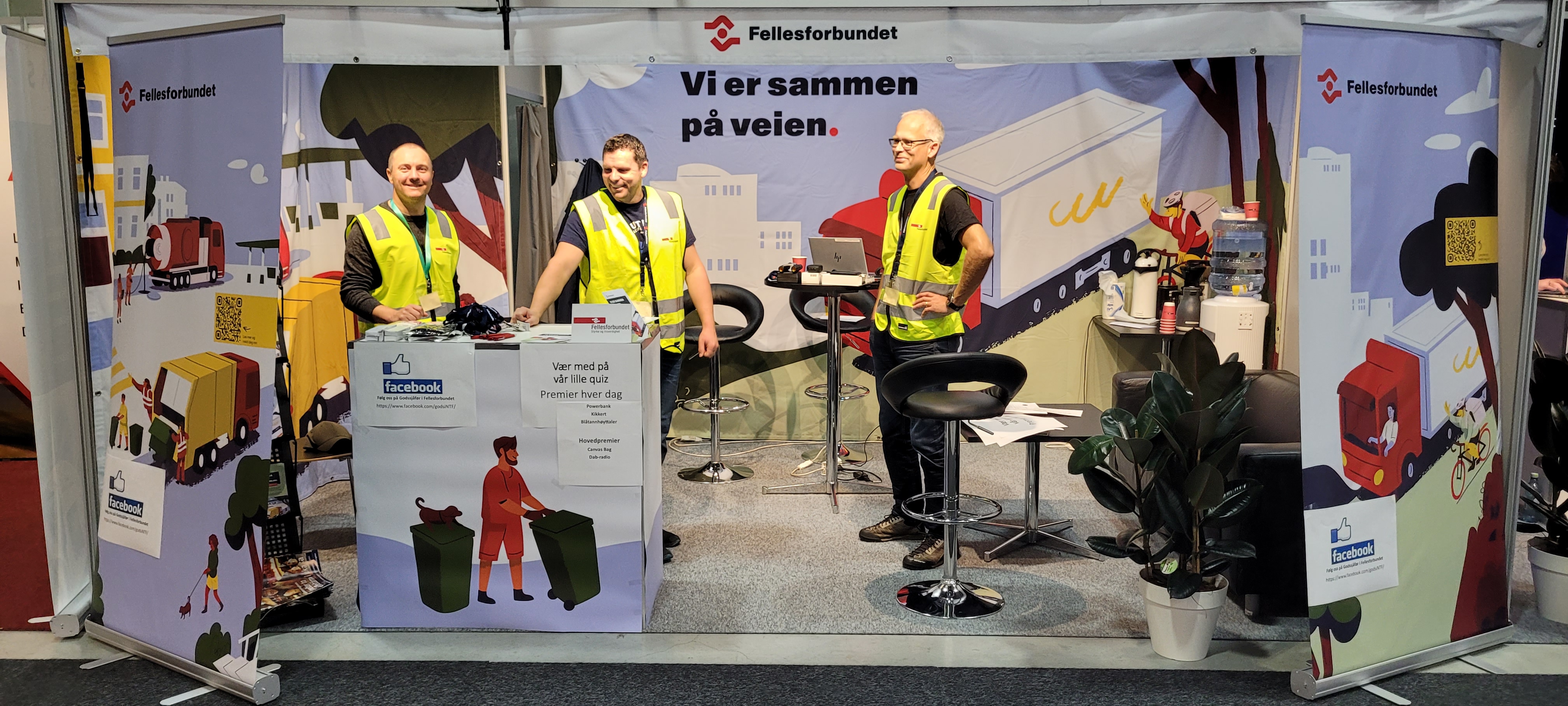 Da er tre hektiske dager på Transportmessa 2023 over. En fin gjeng fra gods og miljø bransjen har tatt i mot over 450 besøkende på vår stand, og gitt masse svar og mottatt mase positive tilbakemeldinger. Vår uformelle quiz har mottatt 250 svar og det er kåret 3 vinnere hver dag, og to hoved vinnere av av quizen vår, se navnene på slutten av innlegget. Vi har fått noen innmeldinger og flere kontaktpersoner som må følges opp av forbundets foreninger nå i etterkant. Vi er invitert til skolebesøk, samt at trafikkskoler vil ha oss på besøk på YSK kurs og når noen tar tungbil lappen der vi kan fortelle om det organiserte arbeidsliv.